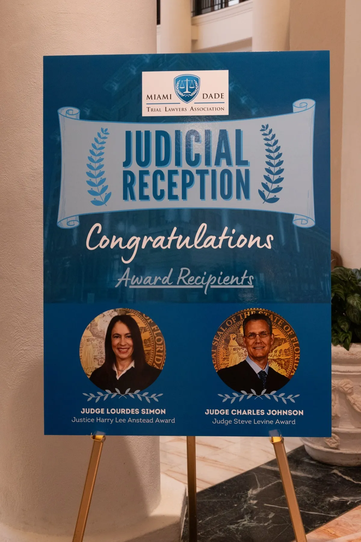 Uno de los momentos más especiales fue cuando Amanda Demanda subió al podio para presentar el prestigioso Premio Justice Harry Lee Anstead a la Jueza Lourdes Simon, en reconocimiento a su liderazgo, servicio ejemplar y su impacto en la comunidad legal de Miami-Dade. La jueza Simon agradeció con un emotivo discurso que conmovió a todos los presentes.