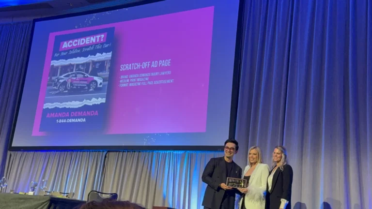 Earlier in the day, members of the Amanda Demanda Law Group team participated in Trial Lawyers Summit events, connecting with legal and marketing professionals from across the country. The awards ceremony followed, bringing together firms nationwide to celebrate innovative work within the legal industry.