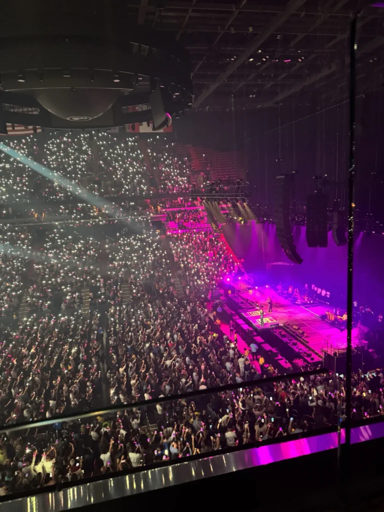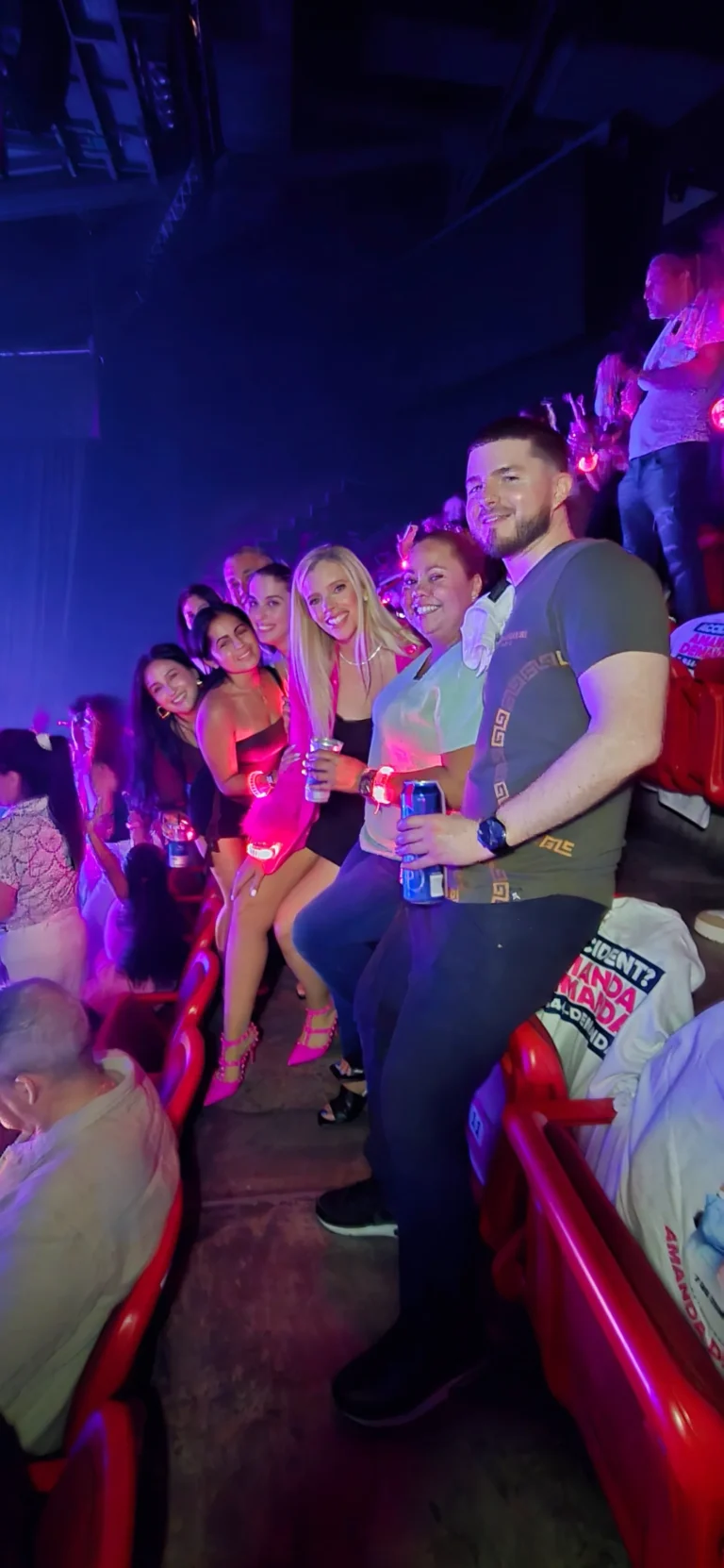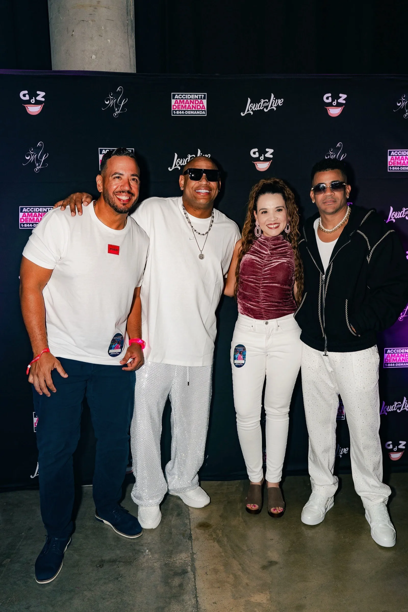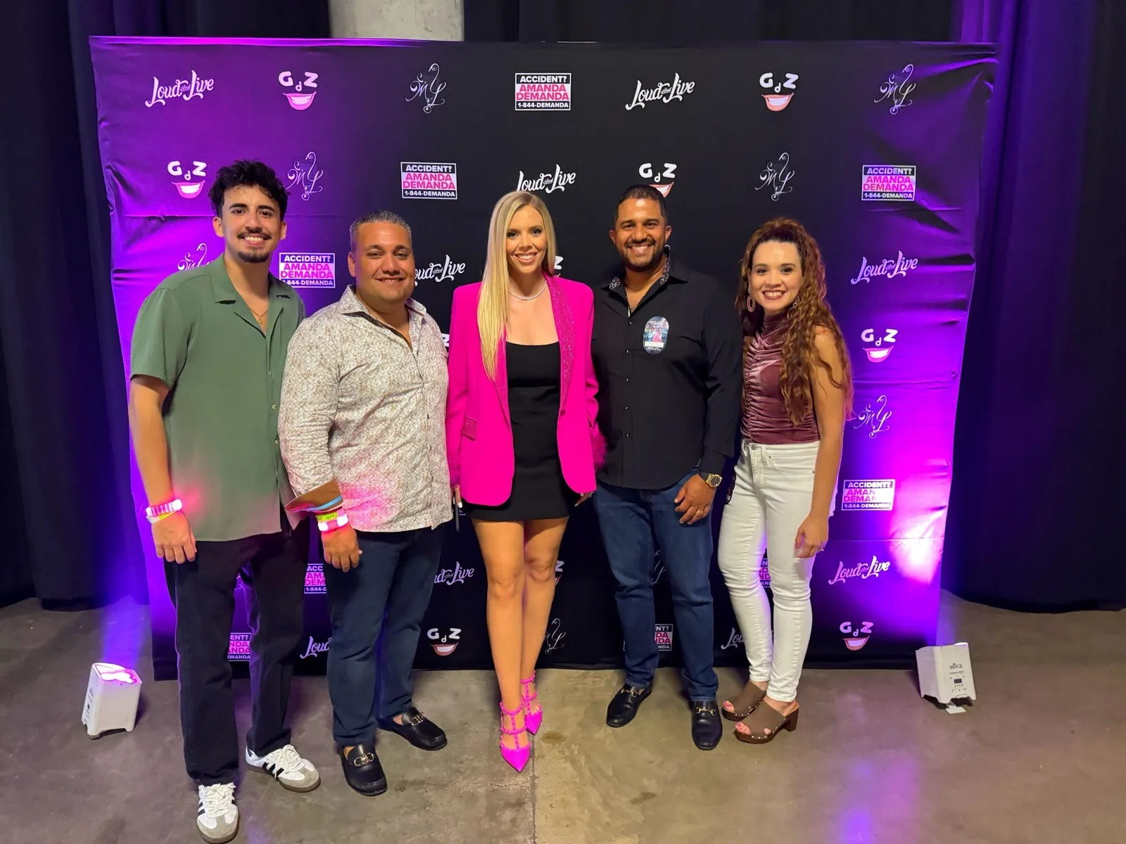 More than a sponsorship, Amanda Demanda’s involvement was a tribute to cultural pride and community resilience. As a Cuban-American attorney who has built her career advocating for the Hispanic community, Amanda brought her passion beyond the courtroom and into the heart of Miami’s music scene. She and her team hosted a dedicated section at the arena, where clients, fans, and giveaway winners came together to celebrate, dance, and enjoy the night in style — all wearing custom white Amanda Demanda shirts and lighting up the venue with pink LED bracelets that matched the energy of the show.
